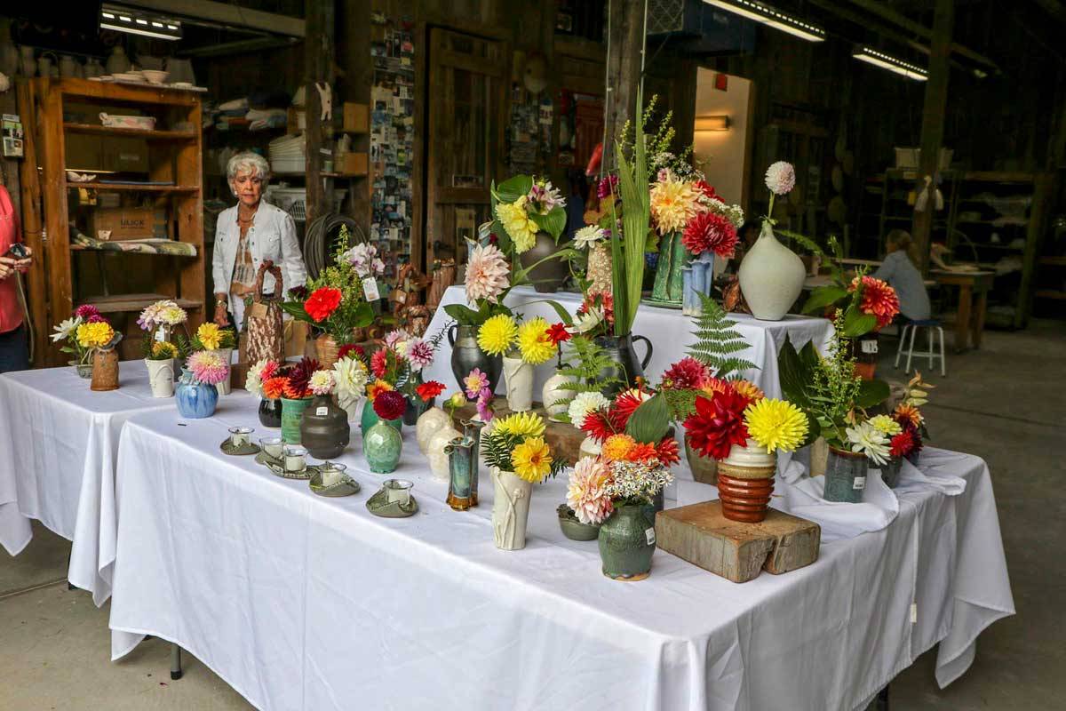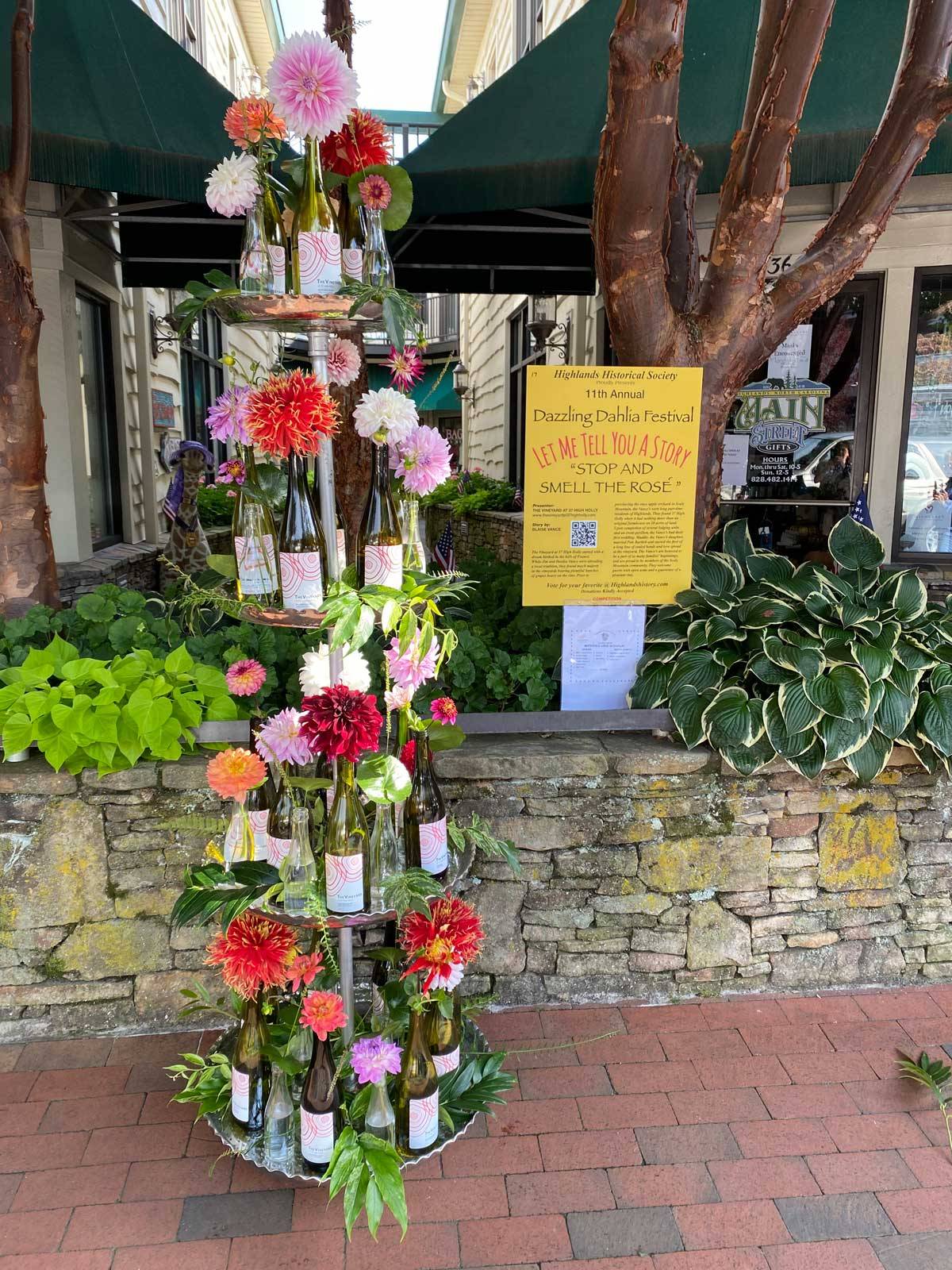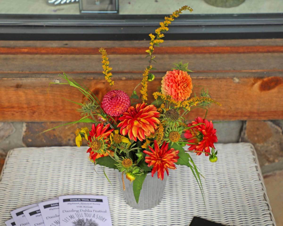 On Saturday and Sunday, September 19th and 20th, Highlands became the backdrop for beautiful vignettes of dahlias and native plants. A map directed people to the displays. During the weekend members of the public were encouraged to vote for the display they liked best. The voting closed at 5:00 p.m. on Sunday. This year there were 33 displays, as described below and photographed by Marty Boone, Boonedocks Photo Graphics.