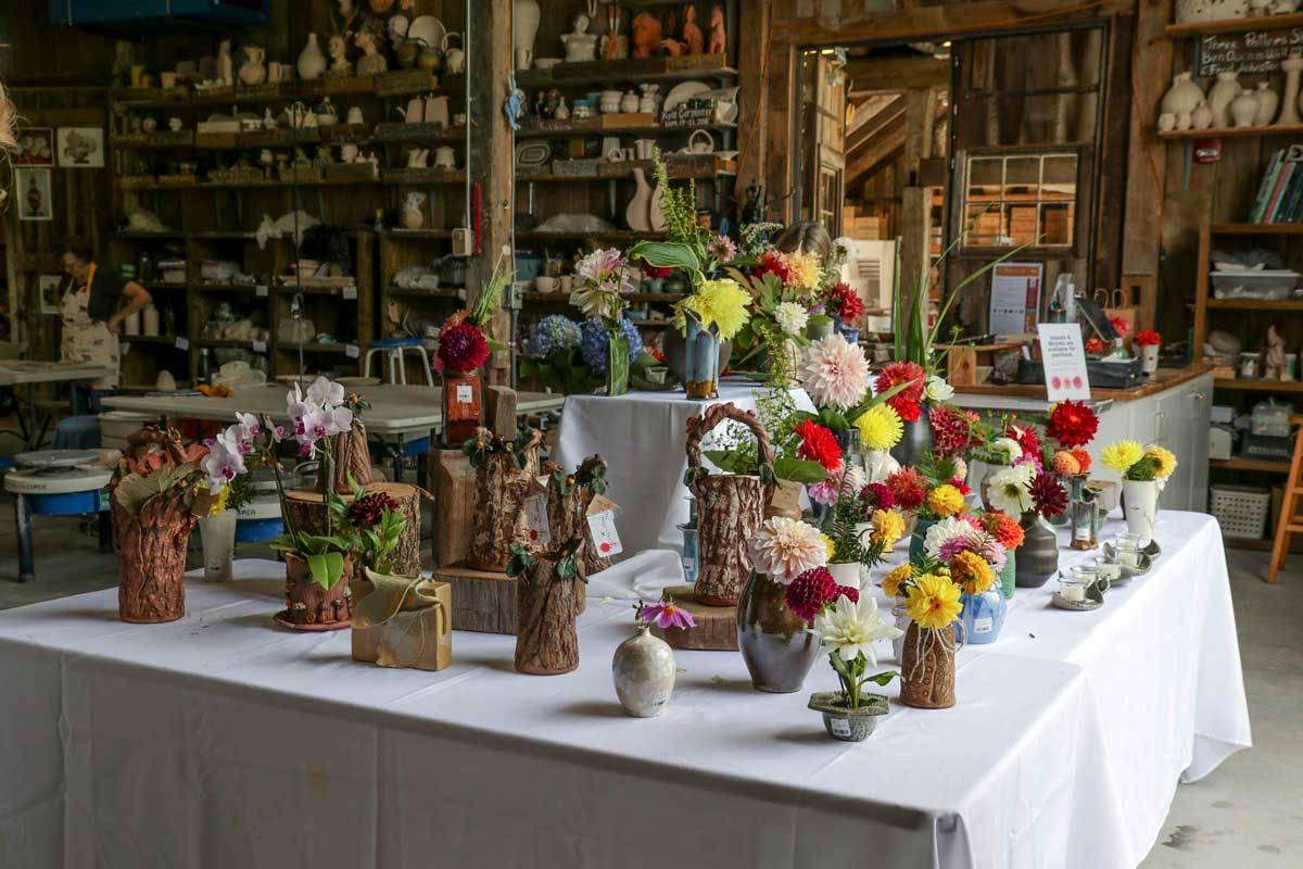 On Saturday and Sunday, September 11-12, Highlands became the backdrop for beautiful vignettes of dahlias and native plants. A trail map directed people to the displays. During the weekend, members of the public were encouraged to vote for the display they liked best. The voting closed at 5:30 pm on Saturday. This year there were 27 displays, as described below. Photos by Greg Clarkson.